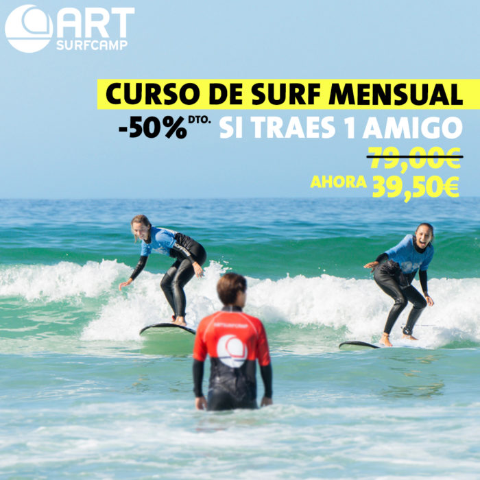 Oferta plan amigo, 50% de descuento para ti y para tu amigo/a durante el primer mes. Para conseguir la oferta llámanos al 881 256 993 o escríbenos a info@artsurfcamp.com