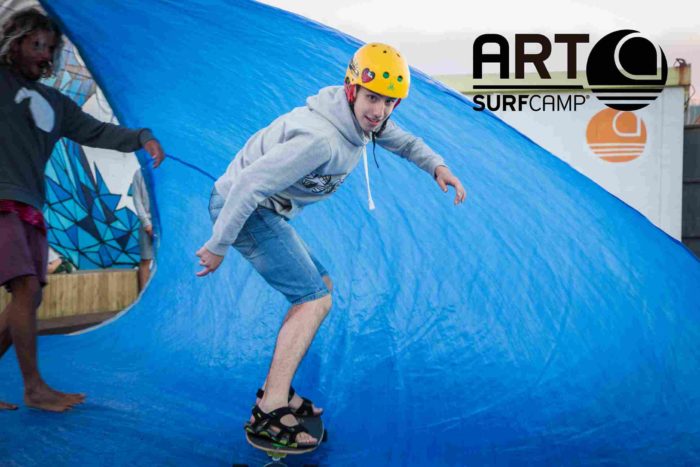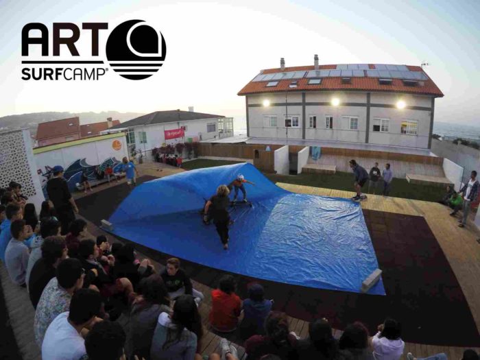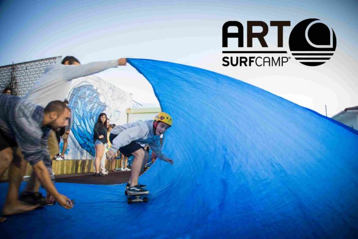 ¿Qué hacen esos locos en monopatín sobre una lona azul como si fuera una ola? ¡Tarp surfing! ¿No te suena de nada? Pues es un movimiento urbano nacido en California como fusión del surf y del skate y una de las actividades con las que más nos estamos divirtiendo en los campamentos de surf baratos en España de Art surf camp.