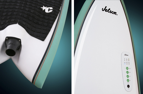 En lo relativo a lo que estrictamente podemos llamar surf, una empresa catalana, Jetson Surf Technologies, en colaboración con la empresa asturiana “Slash Surfboards” ha desarrollado una revolucionaria tabla con motor que llega para mejorar la experiencia del surf, o al menos es como venden su producto: Jetson. Es una tabla con un jet de pequeñas dimensiones que ofrece un impulso extra en los momentos críticos: durante el take off y al remontar la ola. Los diseñadores de esta tabla han buscado que no se note mucho el peso extra y que no influya en su maniobrabilidad en condiciones normales, pero que se pueda aprovechar la fuerza adicional en determinados momentos. Su control es sencillo: se regula la potencia mediante unos botones en la parte superior de la tabla que son fácilmente accesibles por parte del surfista.